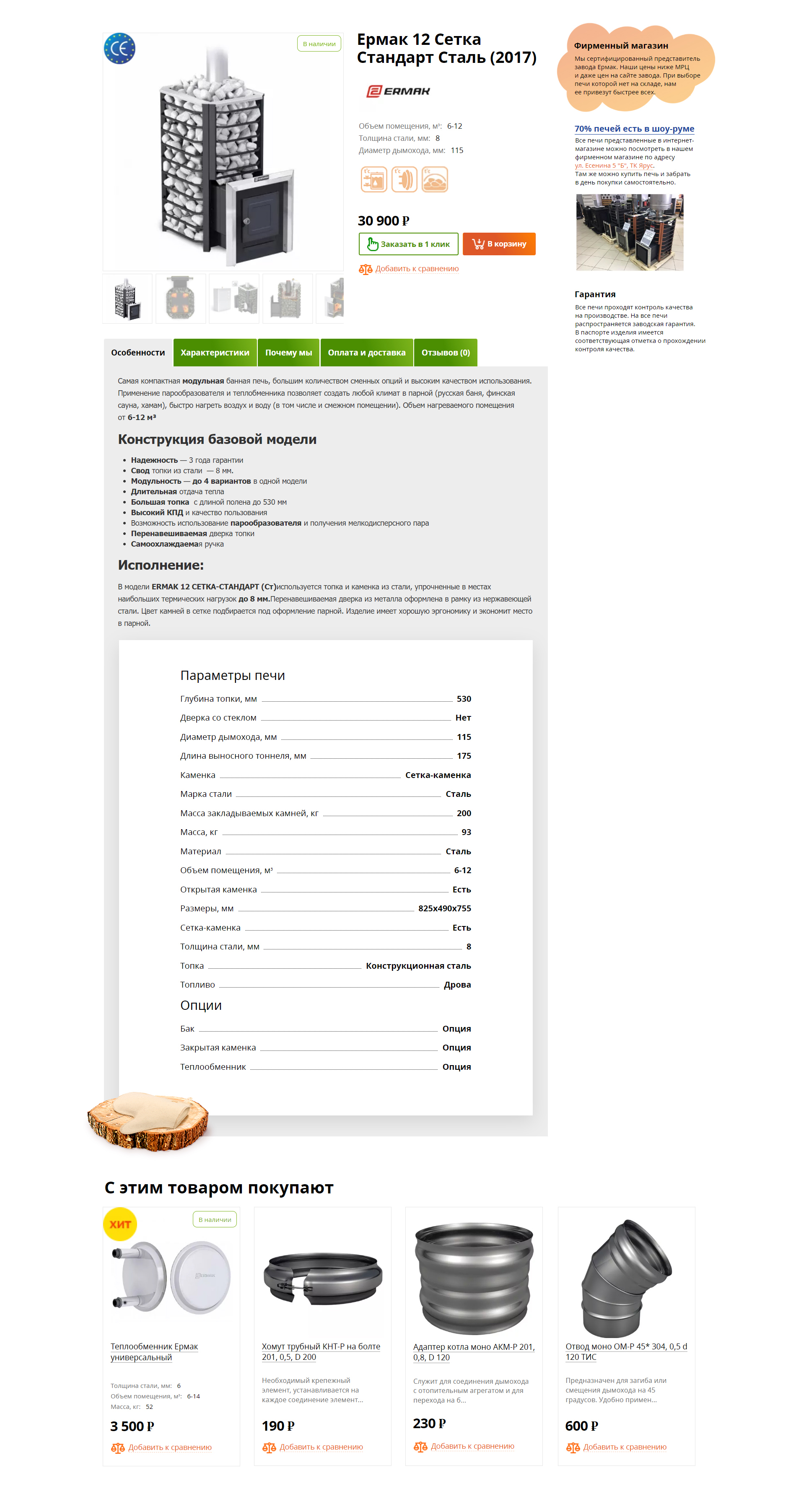 Клиент продаёт печи для бани, сауны, отопления домов. Работает по Санкт-Петербургу и области. Официальный дилер завода «Ермак» в регионе.