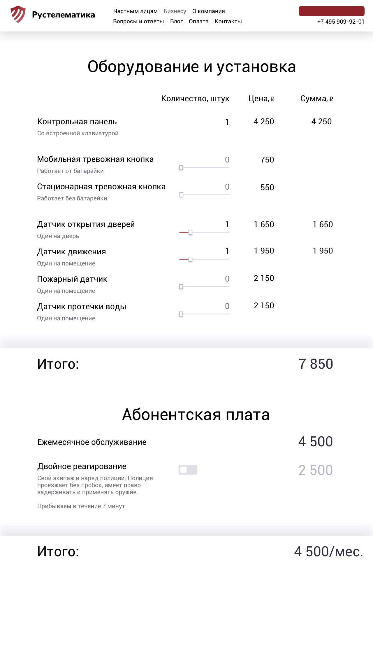 Задача калькулятора — дать стандартную цену и сделать простой расчёт конечной стоимости с дополнительным оборудованием.